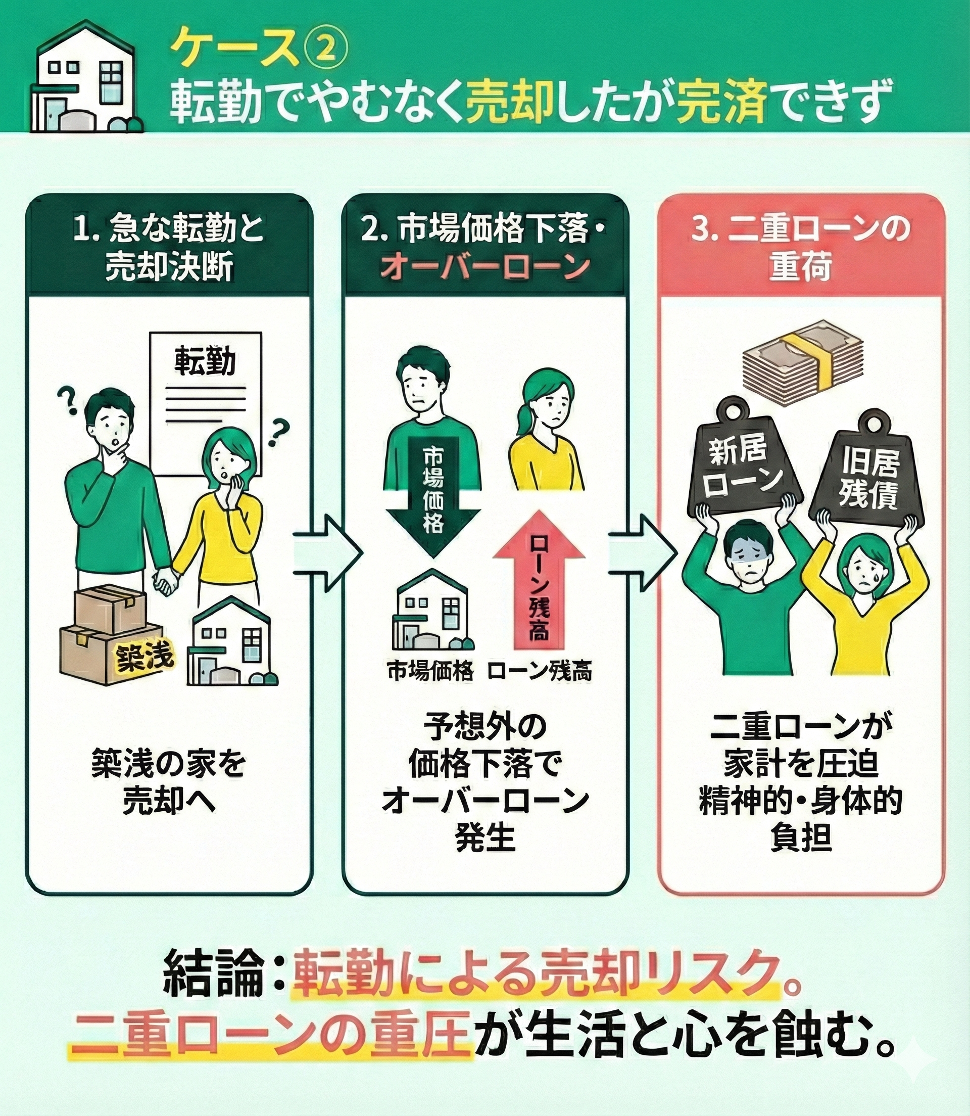 - ケース② 転勤でやむなく売却したが完済できず