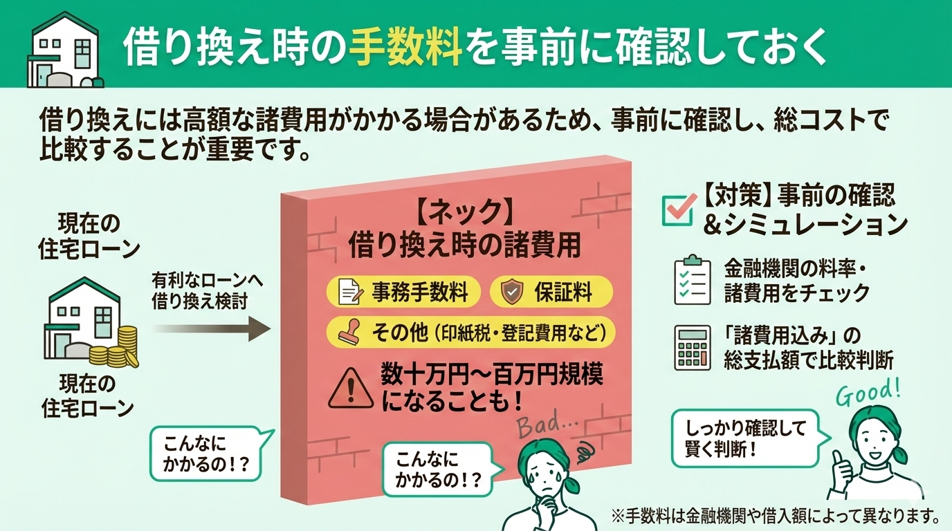 ただし、借り換えには保証料、事務手数料など数十万円程度の諸費用がかかるのが一般的。各種手数料の費用相場を以下の表にまとめました。