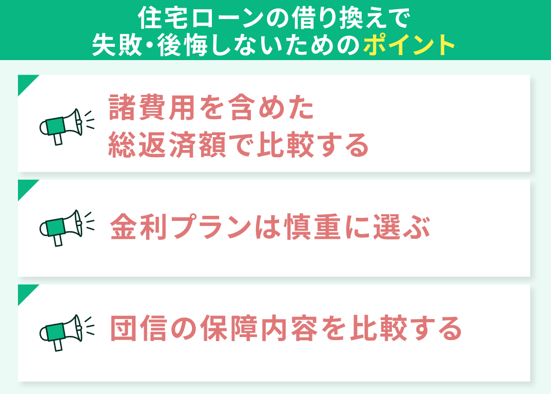 こちらでは、借り換えで後悔しないために押さえておきたいポイントについて解説していきます。