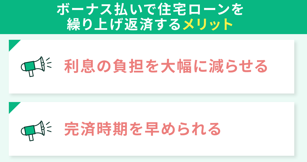 ボーナスを使って繰り上げ返済を行うと、利息の負担が減り、完済時期を早められます。