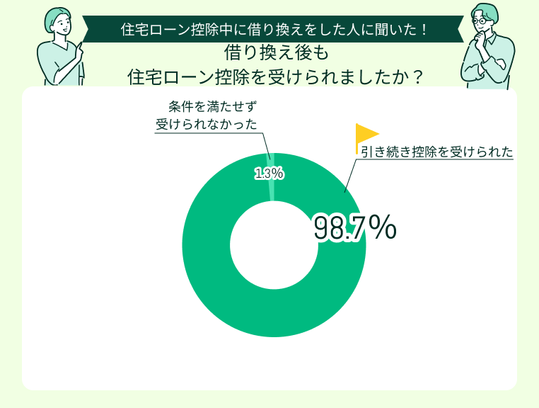 今回アンケートのご回答いただいた方のうち98.7%の方は、借り換え後も「引き続き控除を受けられた」ようです。