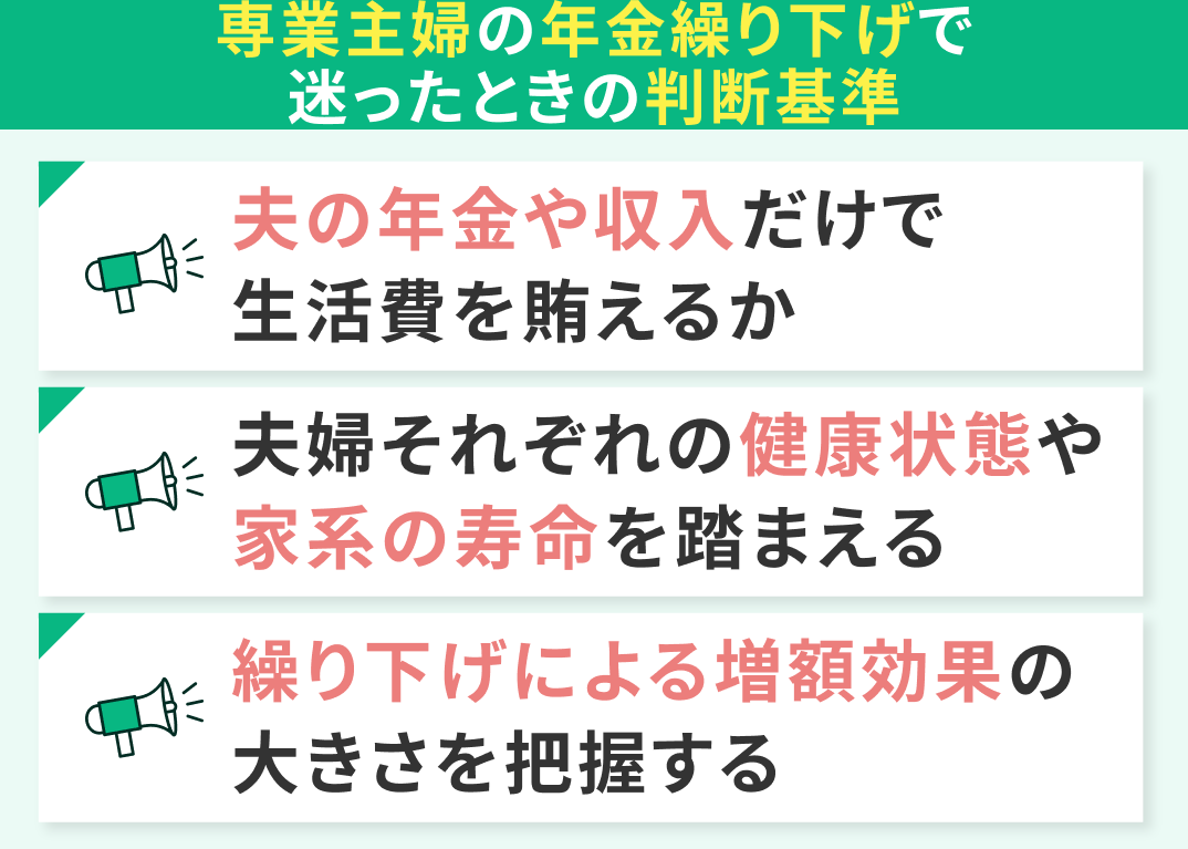 専業主婦の年金繰り下げで迷ったときの判断基準