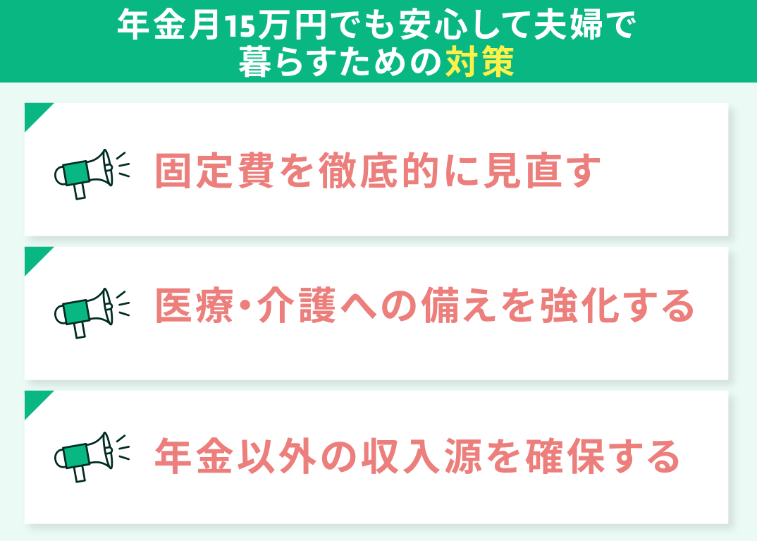 年金月15万円でも安心して夫婦で暮らすための対策