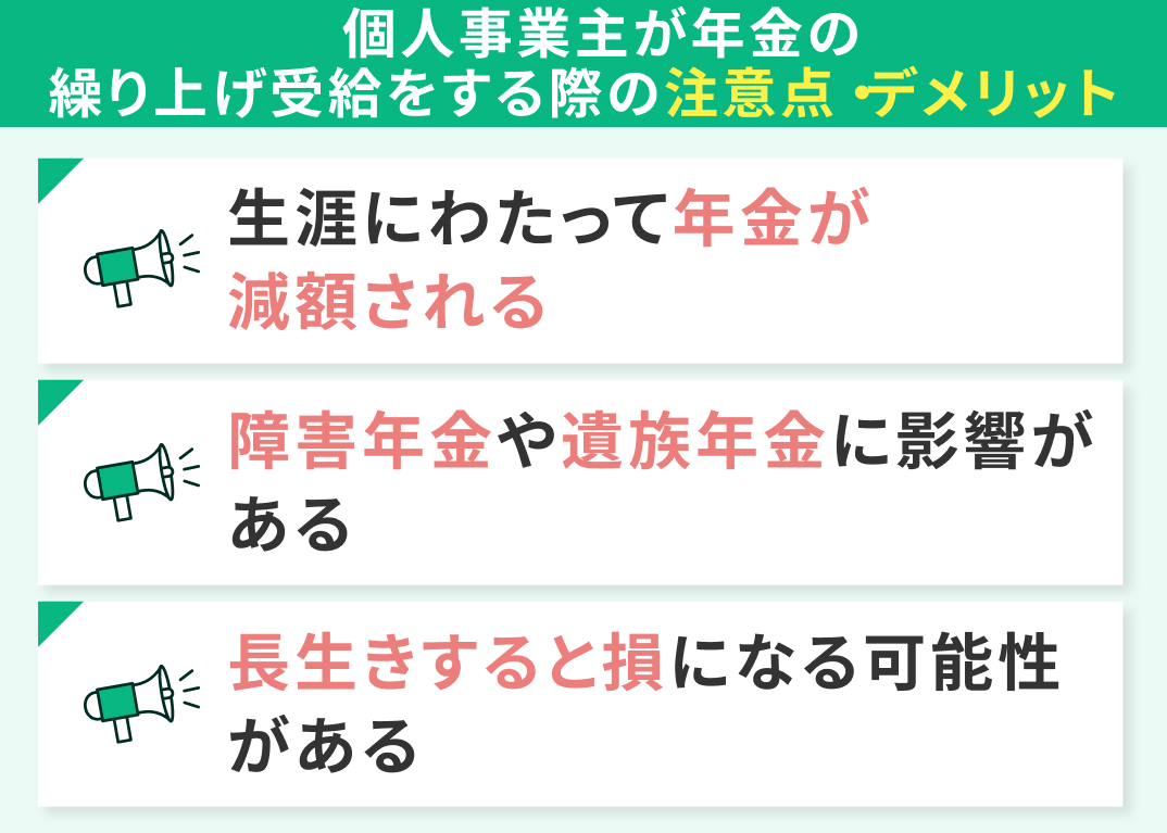 - 個人事業主が年金の繰り上げ受給をする際の注意点・デメリット