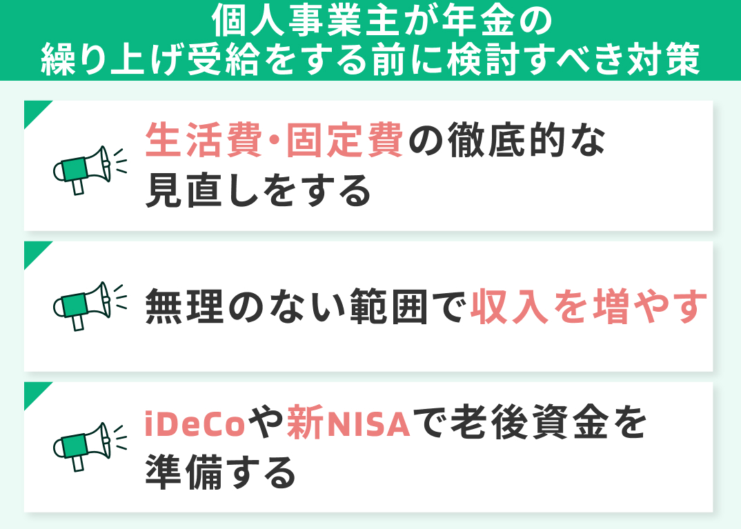ここでは、繰り上げ受給を選ぶ前に見直しておきたい対策を、以下の3つの視点から解説します。