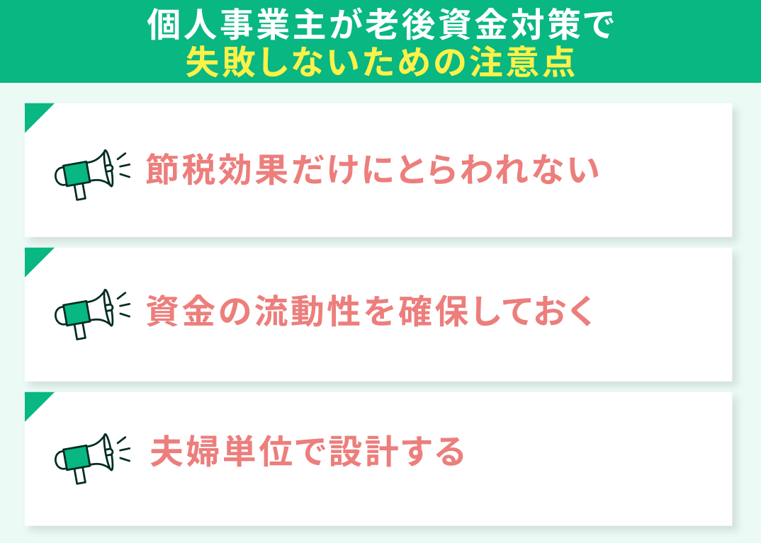 - 個人事業主が老後資金対策で失敗しないための注意点