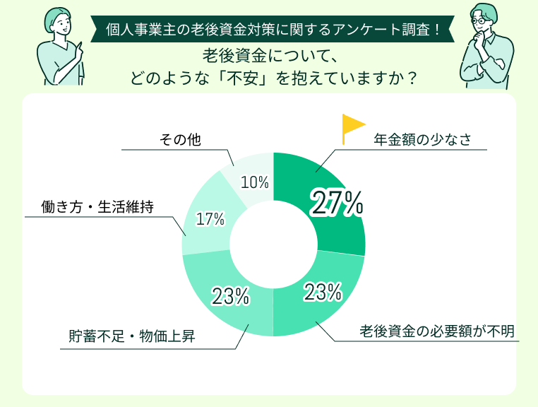 個人事業主が老後資金について一番不安に感じていることは、「年金額の少なさ」でした。