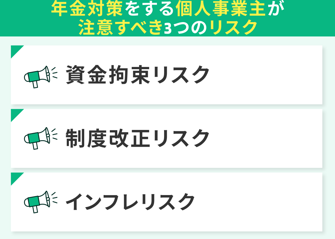 ここでは、個人事業主が年金対策をする際に見落としがちな3つのリスクを解説します。思わず損してしまわないよう、一つずつ確認していきましょう。