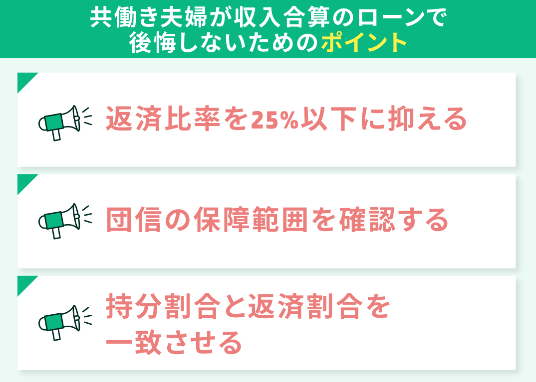 共働き夫婦が、収入合算のローンで後悔しないためのポイントを3つ紹介します。
