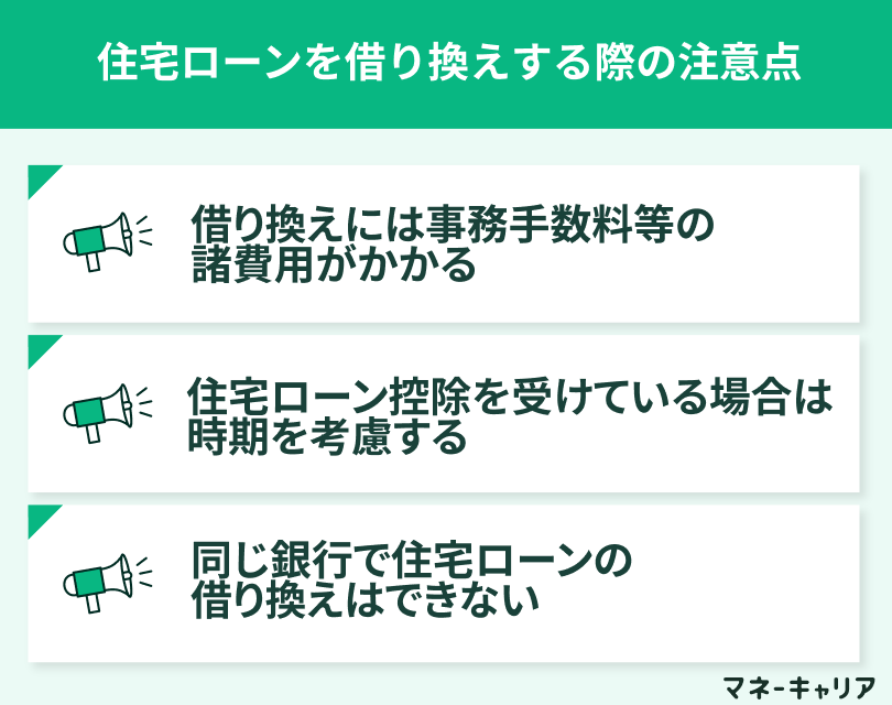 ここでは、借り換えを検討する前に知っておきたい3つの注意点を紹介します。