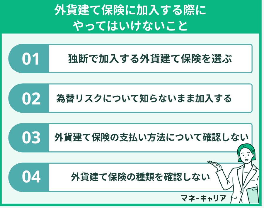 - やってはいけないと言われる外貨建て保険でよくある質問