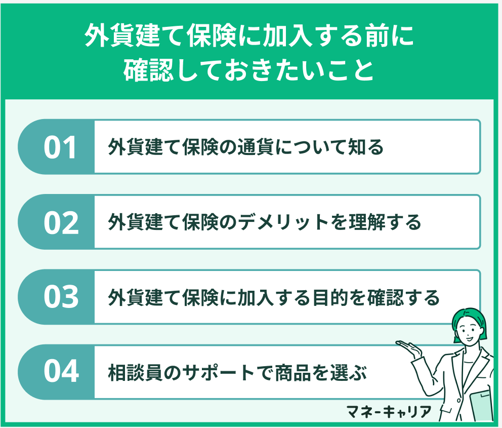 - 外貨建て保険に加入する前に確認しておきたいこと