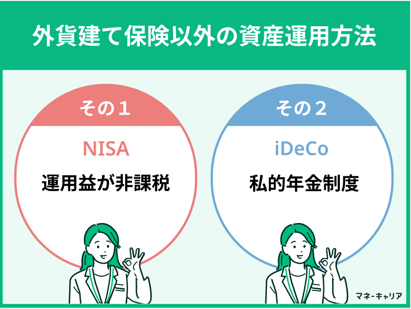 外貨建て保険を検討する際には、他の資産運用方法と比較することが重要です。特にNISAとiDeCoは税制優遇が非常に手厚く、多くの場合、外貨建て保険よりも効率的な資産形成が可能です。ここではこれら二つの制度について詳しく解説します。