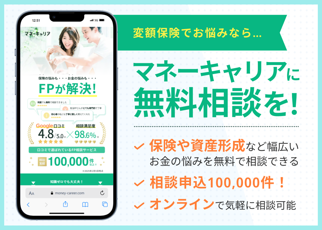 その場合、リスクを軽減・管理する目的で「貯蓄型保険」や「終身型保険」などがあるため、気になる方はマネーキャリアの『保険相談』にてこれらについても確認してみましょう。