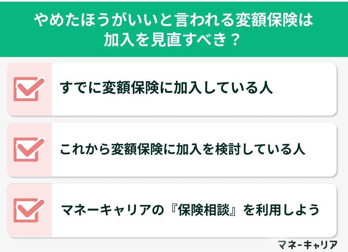- やめたほうがいいと言われる変額保険は加入を見直すべき?