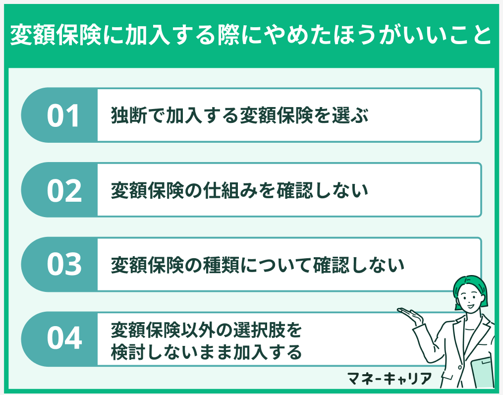 - 変額保険に加入する際にやめたほうがいいこと