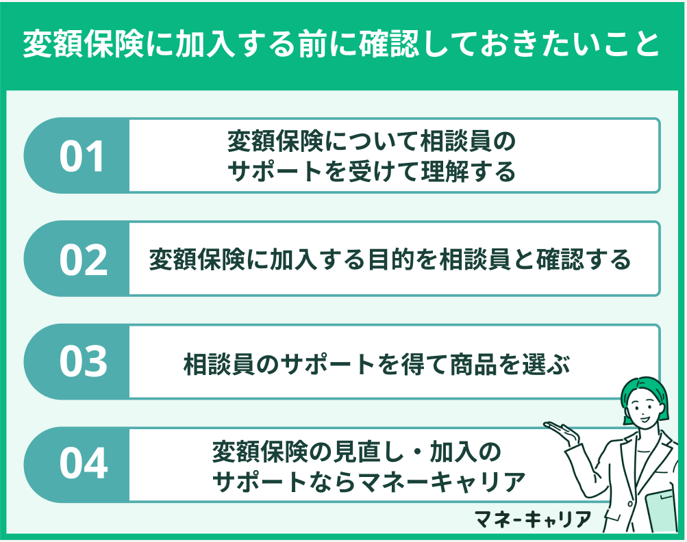 - 変額保険に加入する目的を相談員と確認する