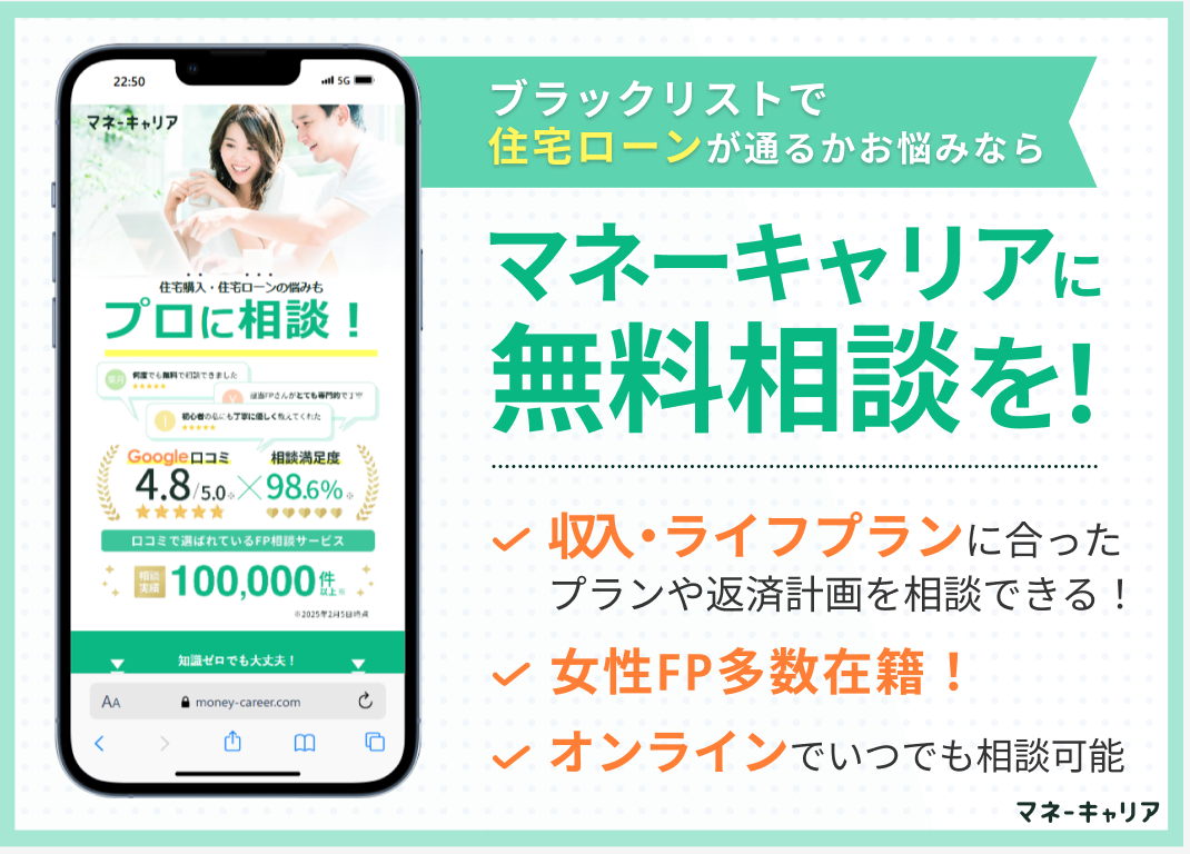マネーキャリアの無料相談では、金融事故を起こしブラックリスト入りしている方からの住宅ローン相談も承っております。