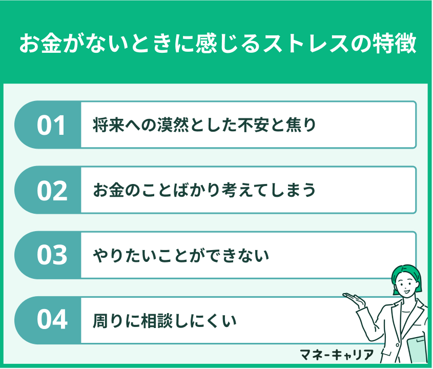 お金がない状態が続くと、将来への漠然とした不安と焦りを感じます。