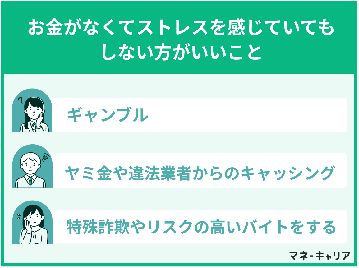 - お金がなくてストレスを感じていてもしない方がいいこと