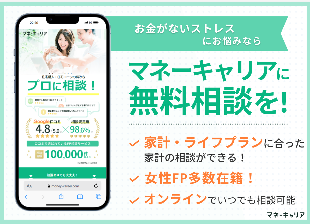 マネーキャリアは、お金に関する悩みを専門家に無料で相談できるサービスです。住宅ローン、家計管理、保険の見直し、借金問題、資産形成など、幅広いお金の悩みに対応しており、あなたの状況に合わせた具体的なアドバイスを受けられます。