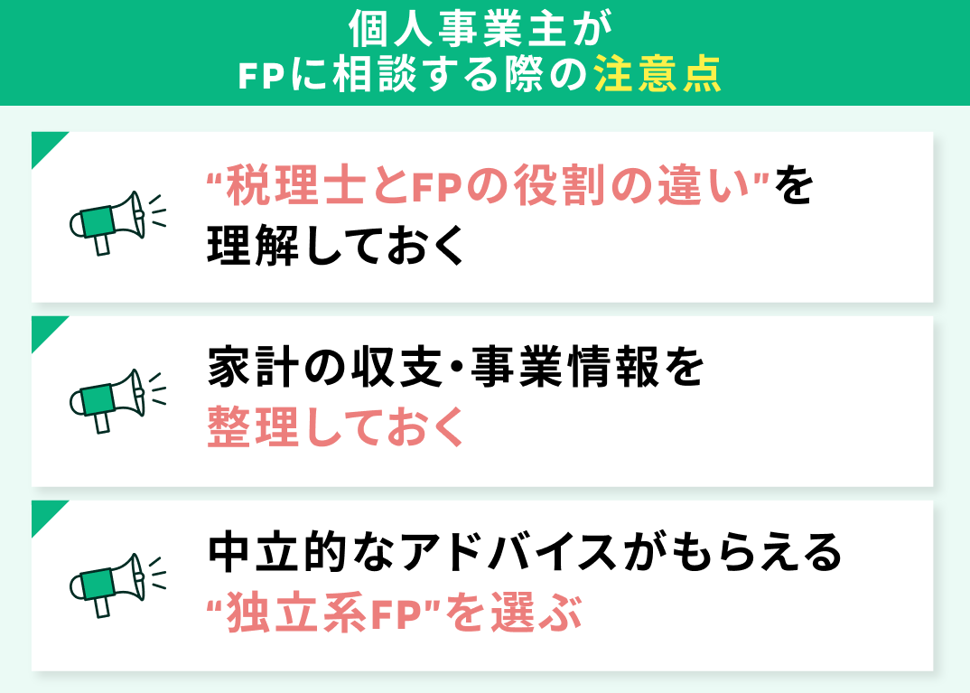 - 個人事業主がファイナンシャルプランナーに相談する際の注意点