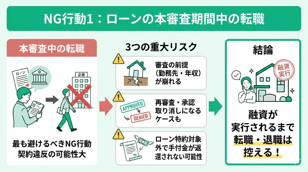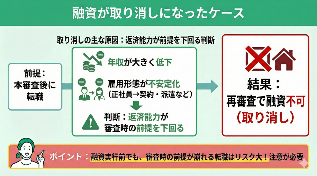 本審査を無事に通過した後であっても、その後の転職が致命的な引き金となり、融資が完全に取り消されてしまうケースも現実には起こり得ます。