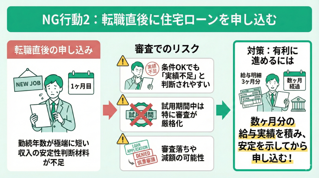 転職と住宅ローンが重なると、知らないうちに審査上不利な行動を取ってしまうケースがあります。