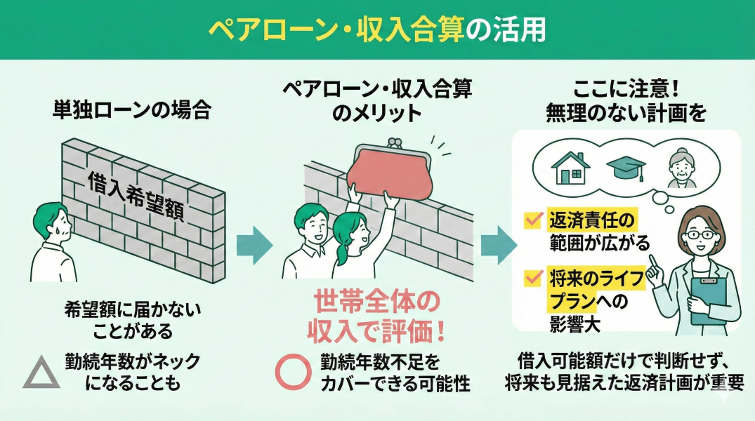ただし、二人でローンを背負うことや、将来の生活設計への影響も大きいため、単に「借りられる金額」だけで判断するのは禁物です。
