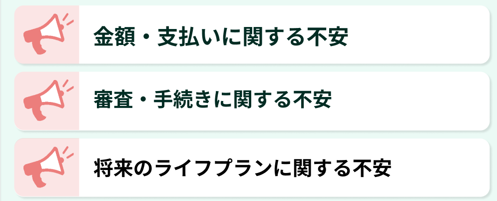 まずは、多くの人が感じやすい住宅ローン不安を、以下の3つの視点から整理していきましょう。