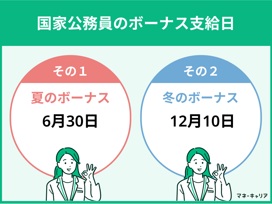 支給日についても明確に定められており、国家公務員の場合は原則として、夏は6月30日、冬は12月10日に支給されます。