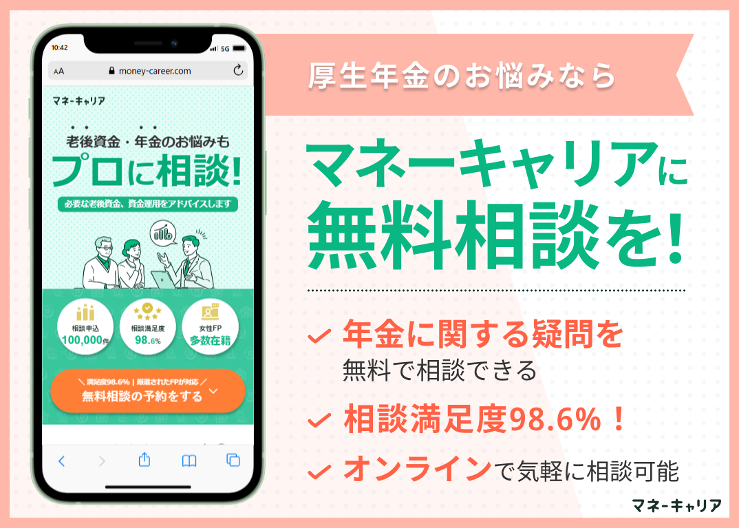国内最大級のオンラインFP相談サービスであるマネーキャリアでは、年金や老後資金に精通したFPに何度でも無料で相談ができます。