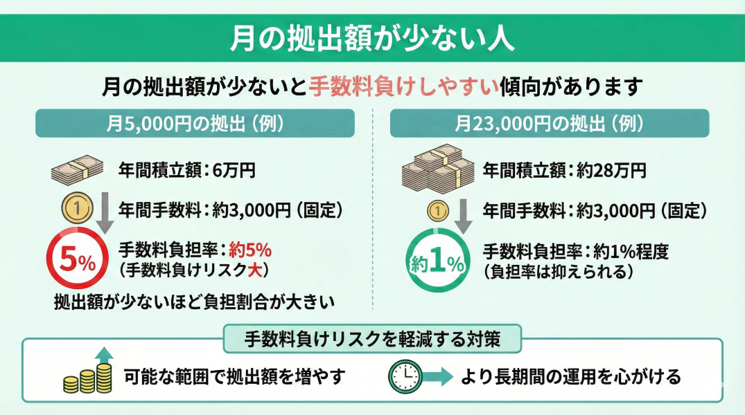 月の拠出額が少ない人は、iDeCoで手数料負けしやすい傾向があります。