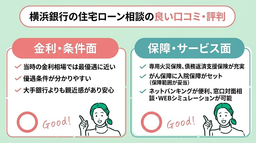 続いて、横浜銀行の住宅ローン相談について、口コミ内容も踏まえながら、客観的な視点でメリット・デメリットを整理していきます。
