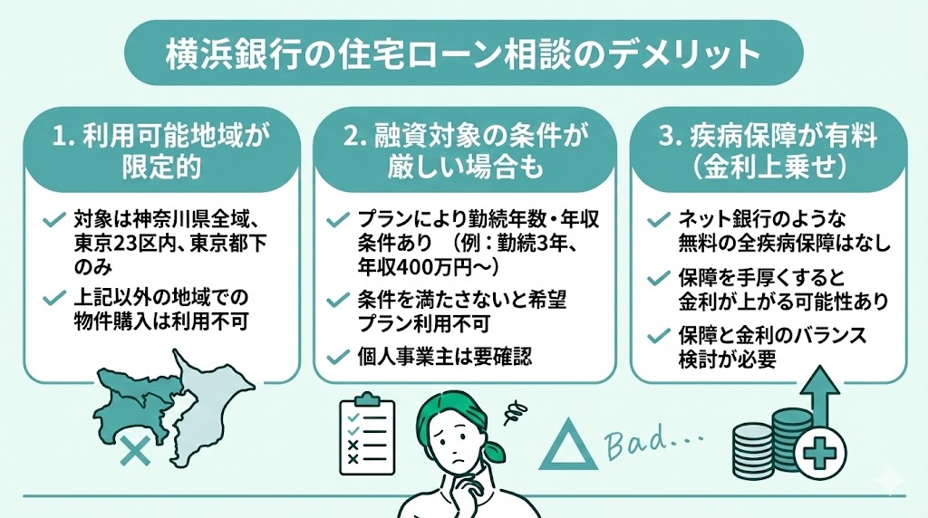 続いて横浜銀行での住宅ローン相談のデメリットを見ていきます。