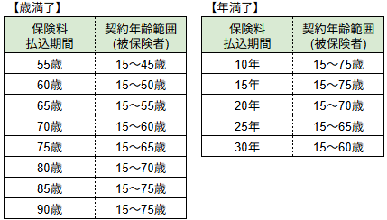 保険料払込期間 | 保険料払込期間は、年齢または年数で設定できます。 |