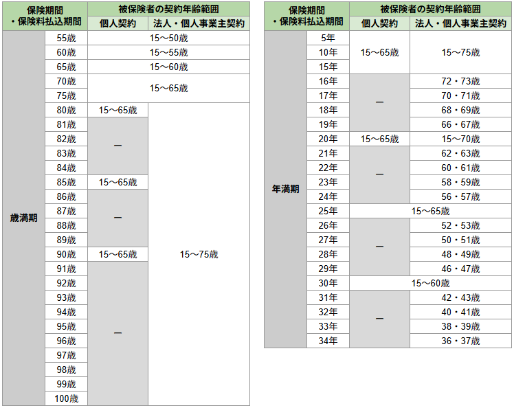 | 保険期間・保険料払込期間 | 保険期間・保険料払込期間は、年齢または年数で設定できます。 |
