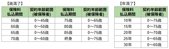 保険料払込期間 | 保険料払込期間は年齢または年数で設定できます。 |