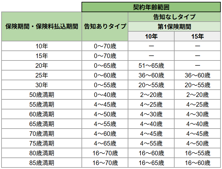 加入年齢 | 0歳~70歳(契約のタイプ、保険期間・保険料払込期間によって異なります。) |