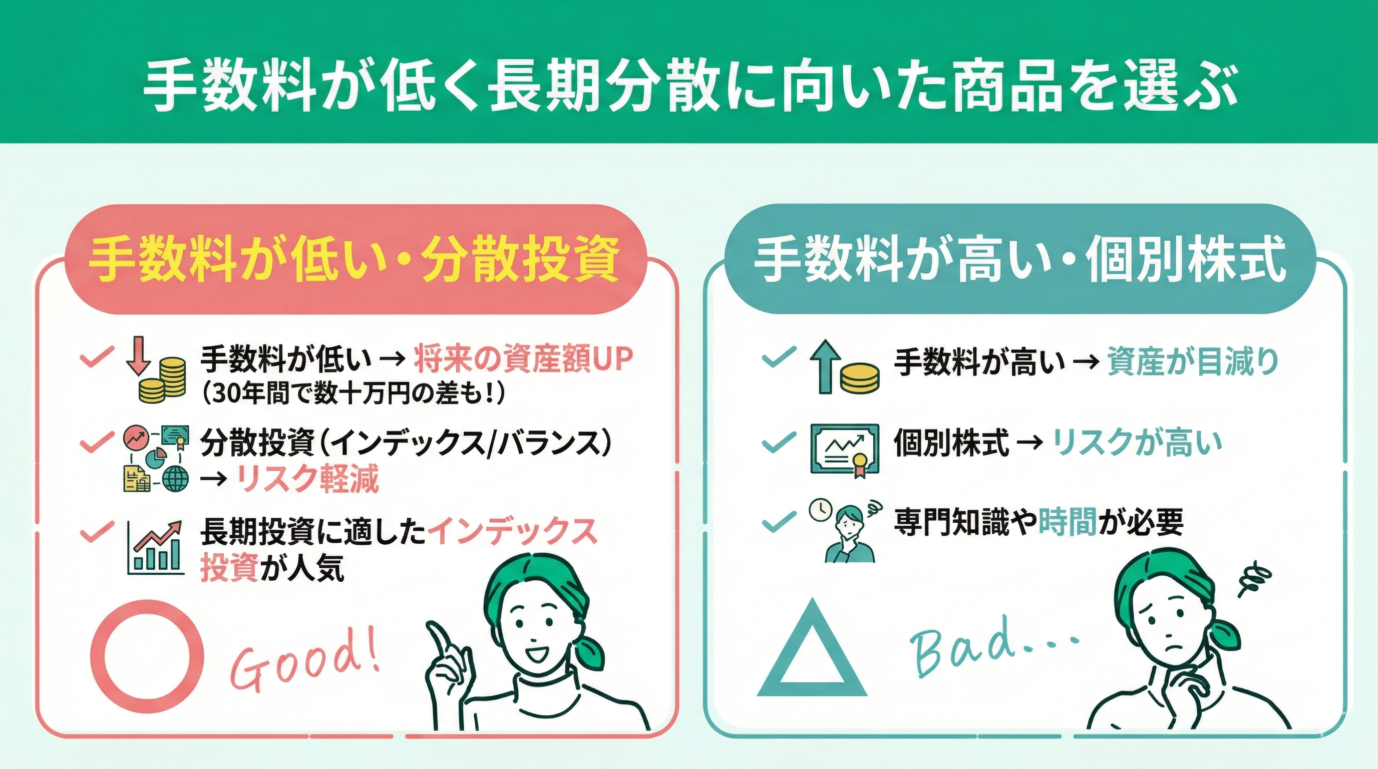 手数料が低く長期分散に向いた商品を選ぶ
