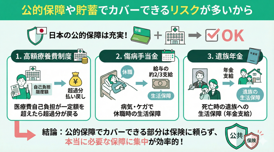 - 公的保障や貯蓄でカバーできるリスクが多いから