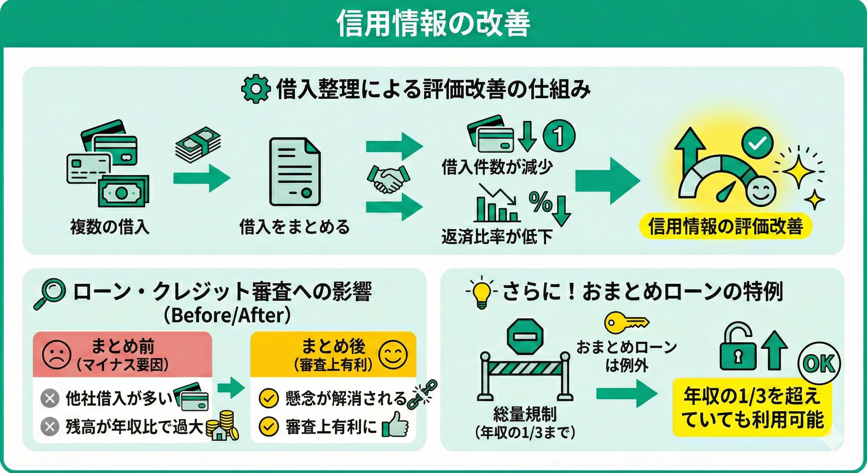 複数の借入を整理して滞りなく返済を続けることは、個人の信用情報を改善する効果も期待できます。