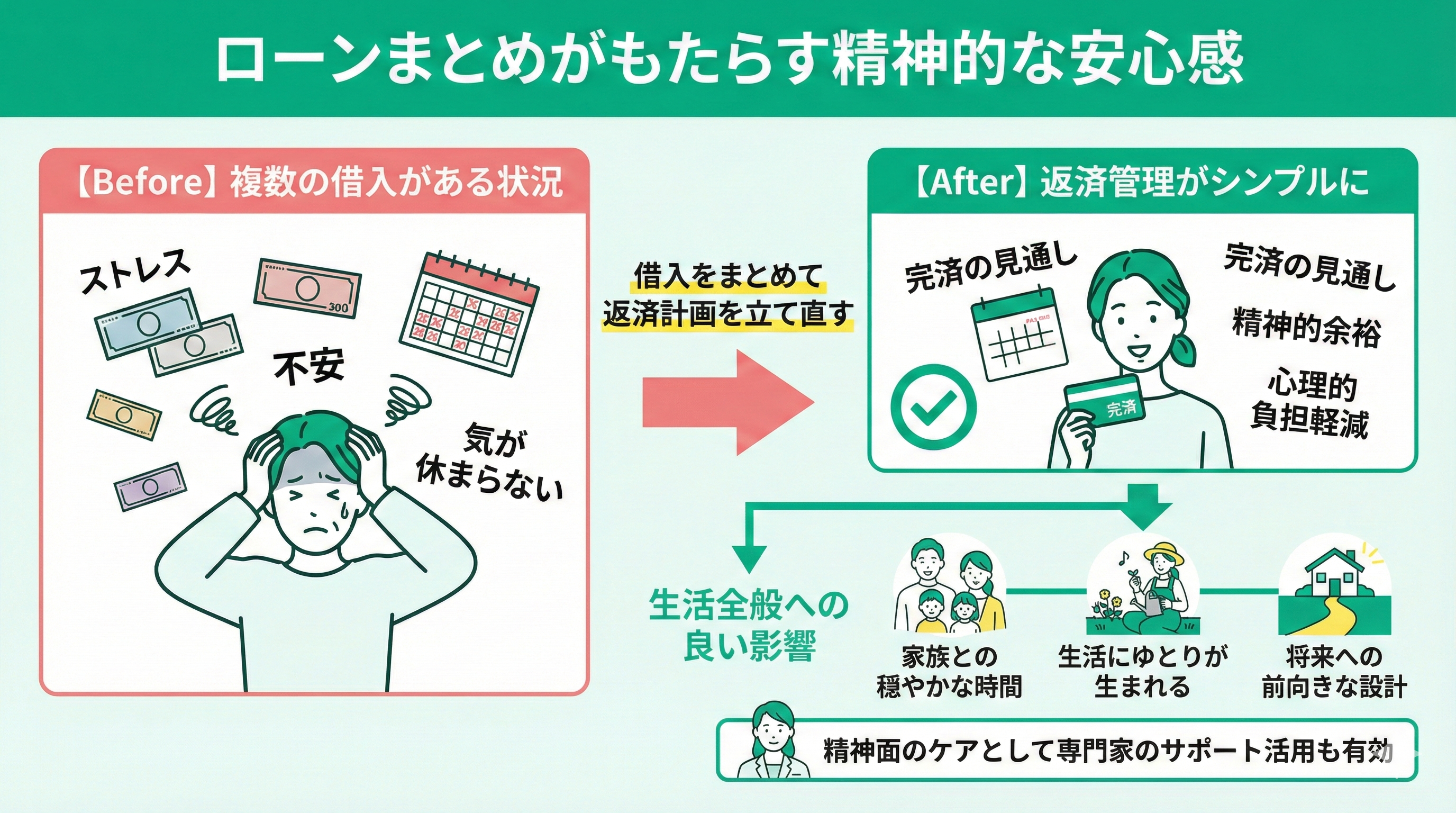 ローンまとめがもたらす精神的な安心感も無視できないメリットです。
