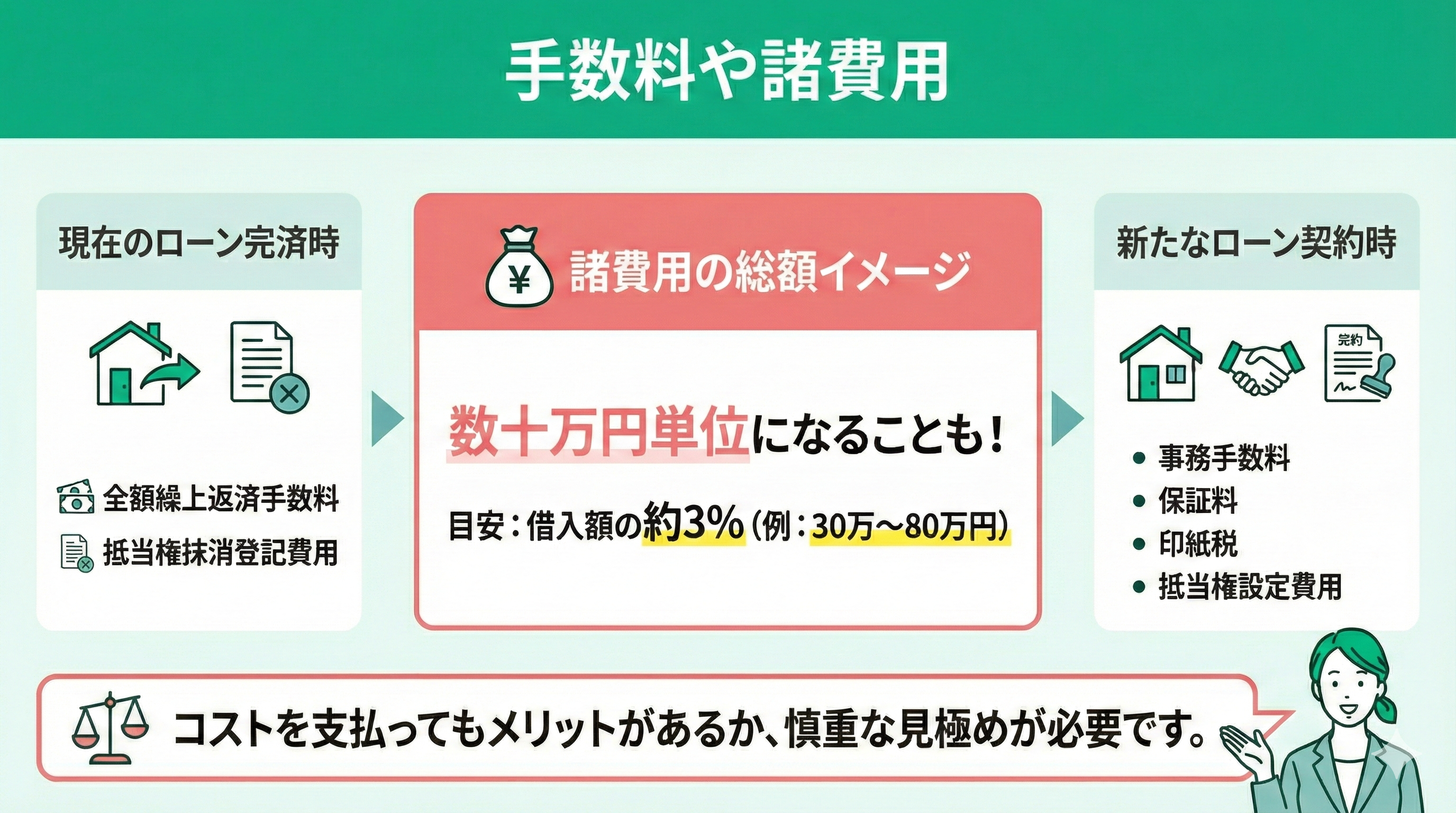 ただし、手数料や諸費用、金利上昇の影響で、必ずしも返済負担が軽くなるとは限りません。総返済額や条件を丁寧に比較し、慎重に判断することが大切です。