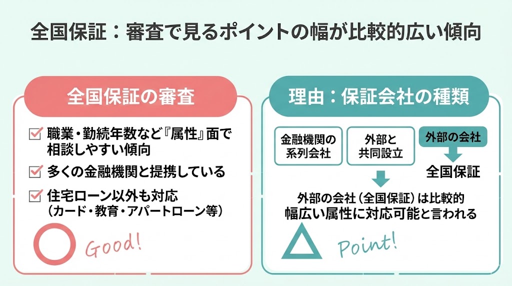 全国保証:審査で見るポイントの幅が比較的広い傾向