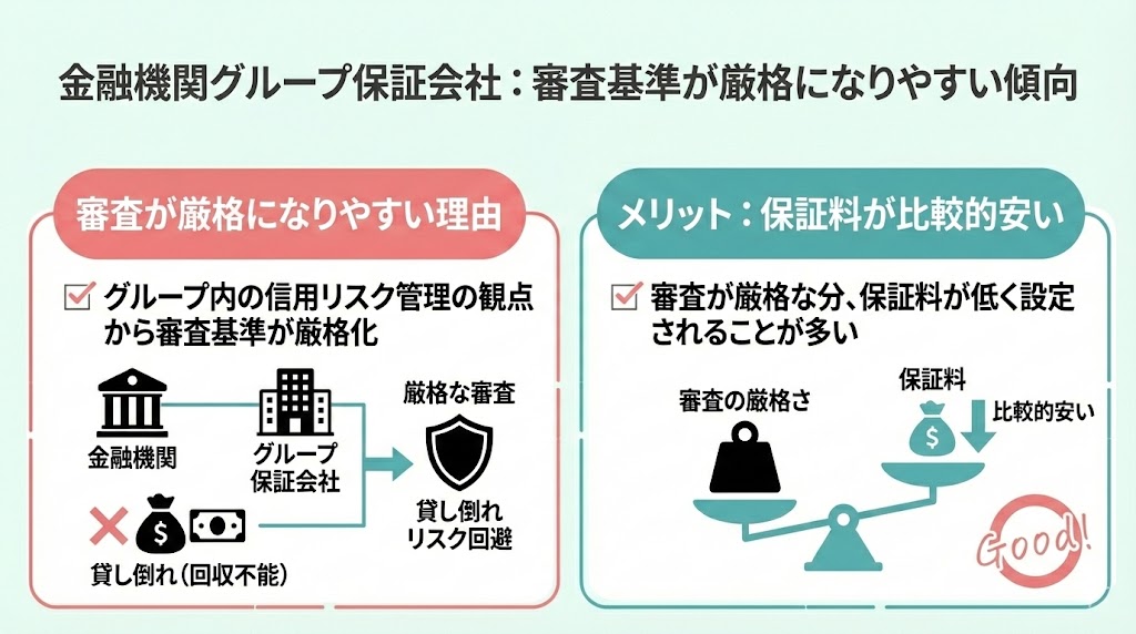 金融機関グループ保証会社:審査基準が厳格になりやすい傾向