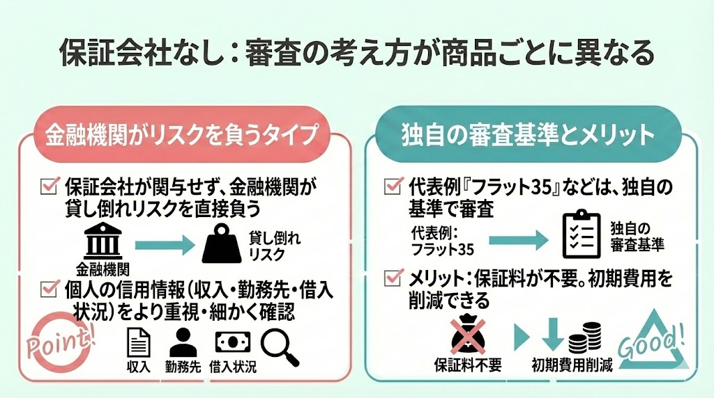 - 保証会社なし:審査の考え方が商品ごとに異なる