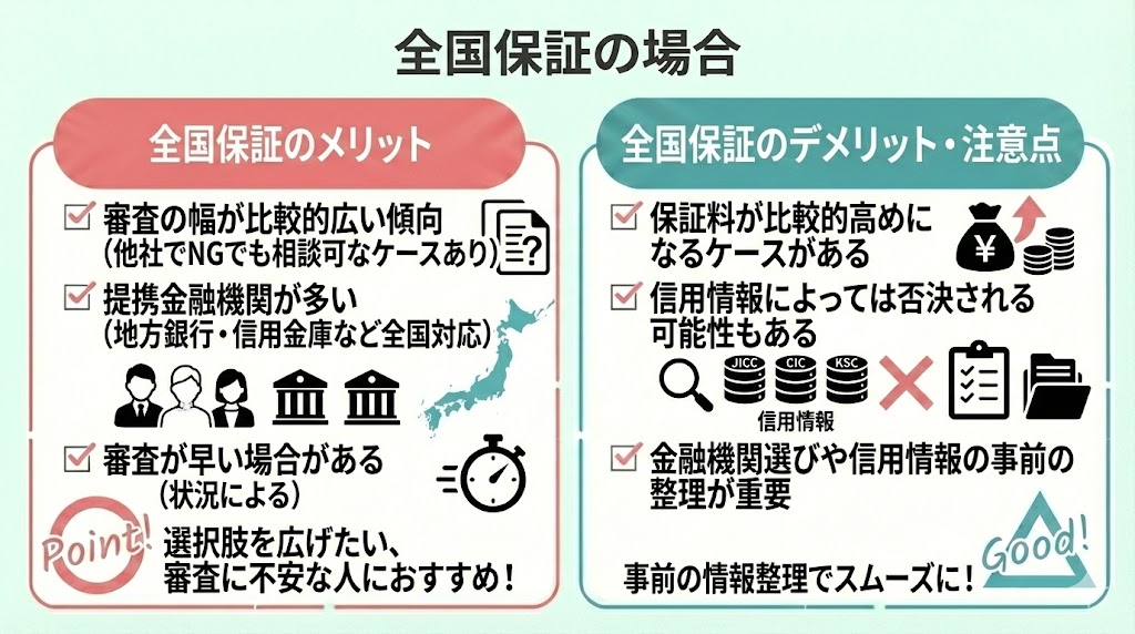 - 全国保証:審査で見るポイントの幅が比較的広い傾向