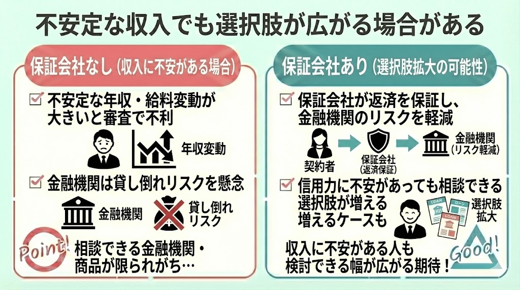 - 不安定な収入でも選択肢が広がる場合がある