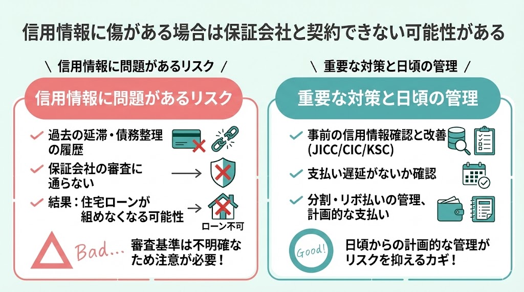 - 内容によっては否決されることもある:信用情報に問題がある場合など、保証を断られる可能性があります。